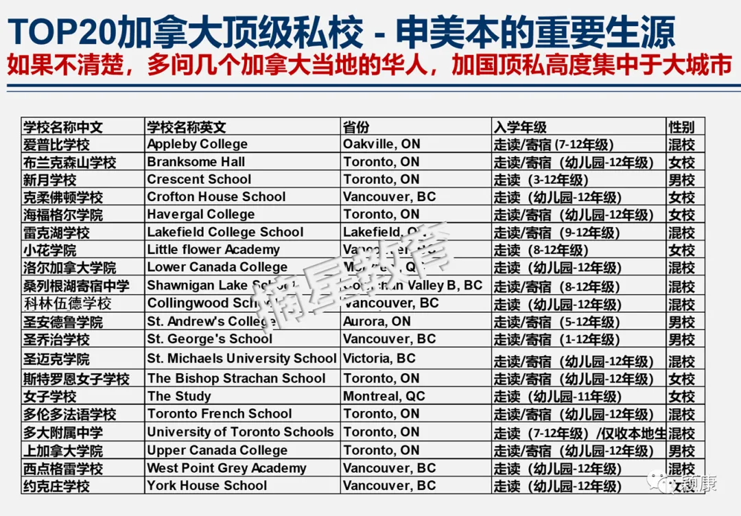 第一层的20所顶级CAIS私校(UTS非CAIS私校),12月初基本就关闭申请,所以不是现在想来加拿大的家庭的主申学校。