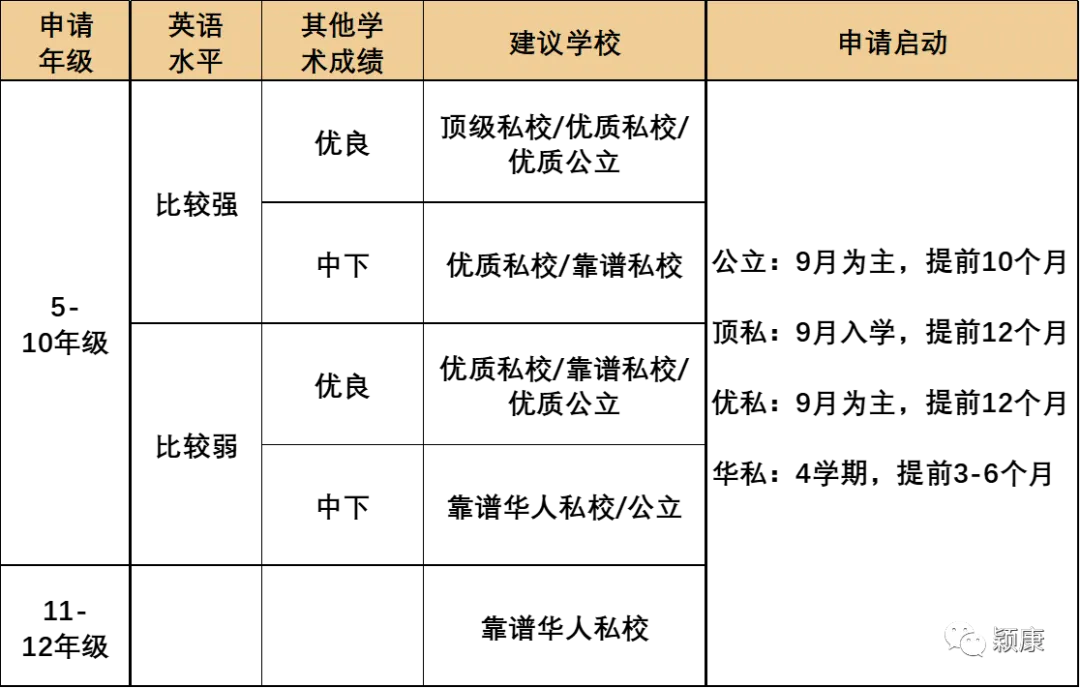 最后上一张总结图。因为本土私校对低龄儿童的英文要求不高,所以就从申请5年级开始。