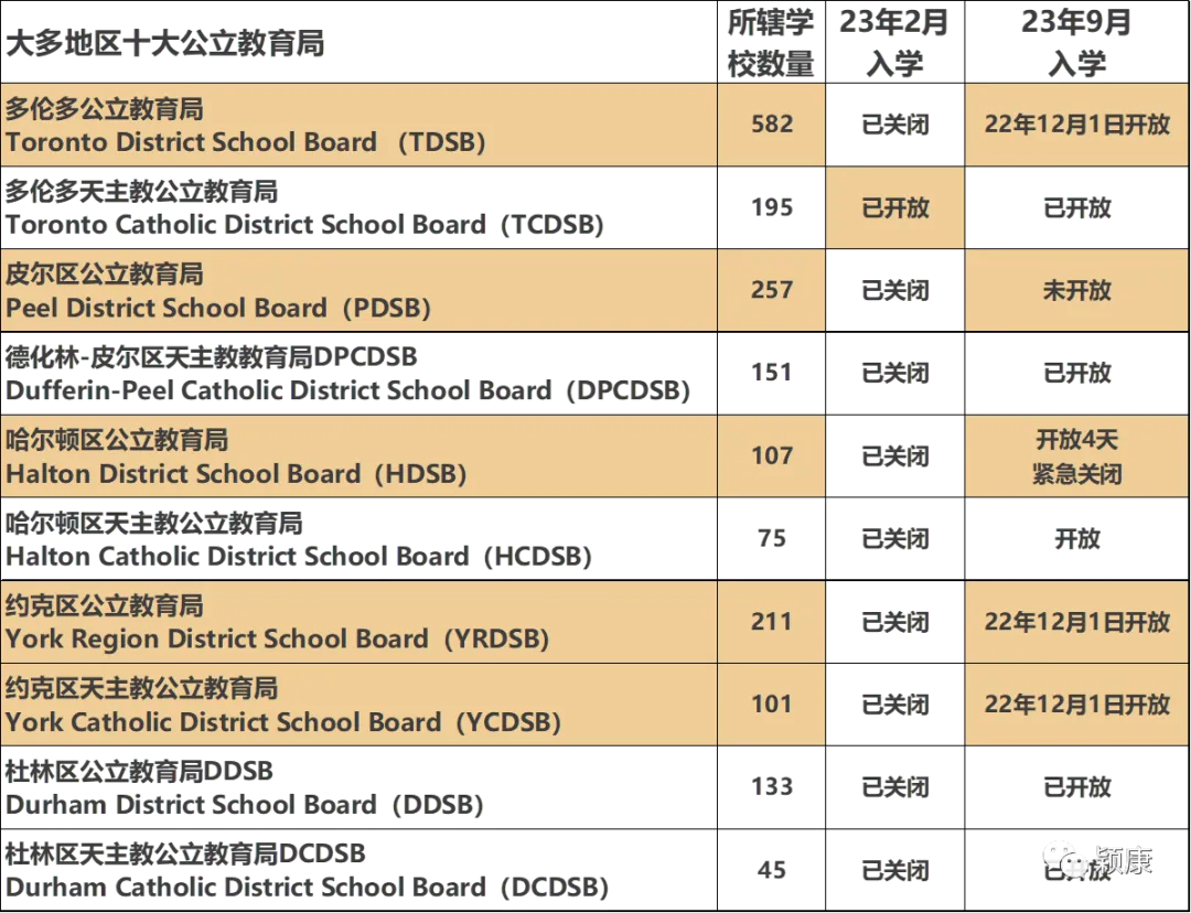 如果是申请安省的公校,明年2月入学的,现在只有TCDSB(多伦多天主教教育局)还开放,其他9个安省教育局都关闭了。