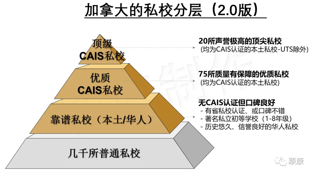 现在结合实际情况,我对加拿大私校分层做了些修正,2.0版本更能帮助到中国的家长认知和区分加拿大的私校(后面会详述)。