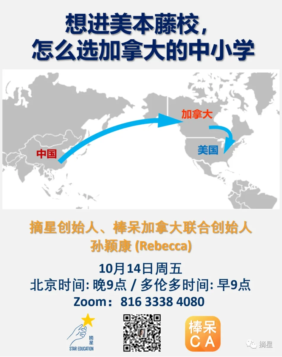 同时,视频号“加拿大摘星教育”也即将上线啦!之后我也会把部分讲座内容放在视频号里,并联动各加拿大私校的开放日,届时欢迎大家关注“加拿大摘星教育”视频号。